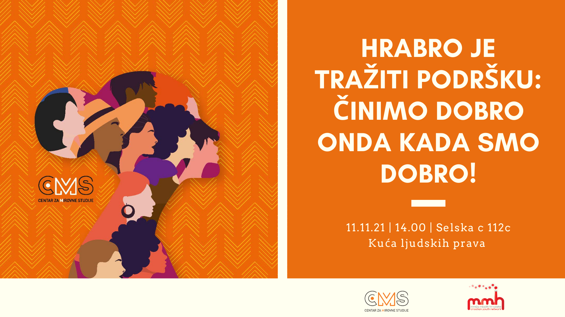 Centar za mirovne studije i Mreža mladih Hrvatske pozivaju vas/te u četvrtak 11. studenog u 14 sati u Kuću ljudskih prava na predstavljanje Džepnog vodiča za hrabre ljude. To je vodič za branitelje i braniteljice ljudskih prava koje uslijed borbe zaboravljaju na vlastito mentalno zdravlje. Vodič je za sve nas, vas, koje reagiramo i ne šutimo ispred društvene nepravde i kršenja ljudskih prava. Vodič je poziv na suradnju kako težina ne bi postala trajno stanje, a briga za naše mentalno zdravlje postala dio naše borbe.