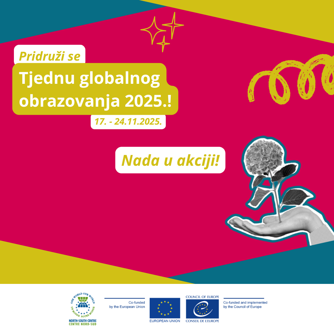 Tjedan nas potiče da kroz obrazovanje njegujemo nadu, razvijamo alternative i vizioniramo pravednije i održivije društvo za sve. Riječ je o svjetskoj kampanji koju vode Centar Sjever-Jug Vijeća Europe i Mreža Tjedna globalnog obrazovanja, čiji je član i Centar za mirovne studije (CMS) koji aktivnosti koordinira u Hrvatskoj.